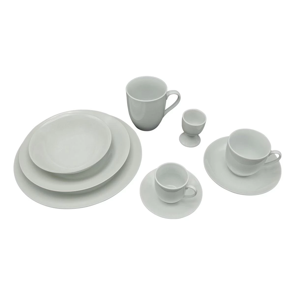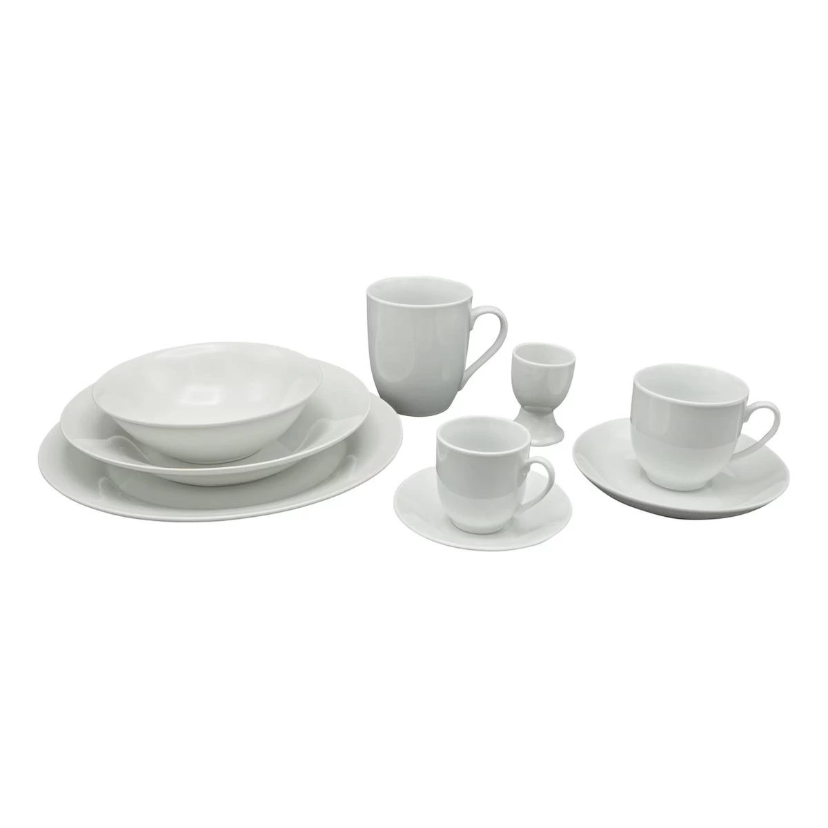 Complete porseleinen servies set / dinerset van 50 stuks. Perfect als startersset, of als je inmiddels een mix van borden en kopjes hebt staan in je kast en toe bent aan vervanging. Wit porselein met een tijdloze ronde vorm is ideaal voor het serveren van een vrienden diner. Maar ook ideaal voor iemand die naar een eigen huis gaat of een student die op kamers gaat. In een aanschaf heb je een heel servies in huis.