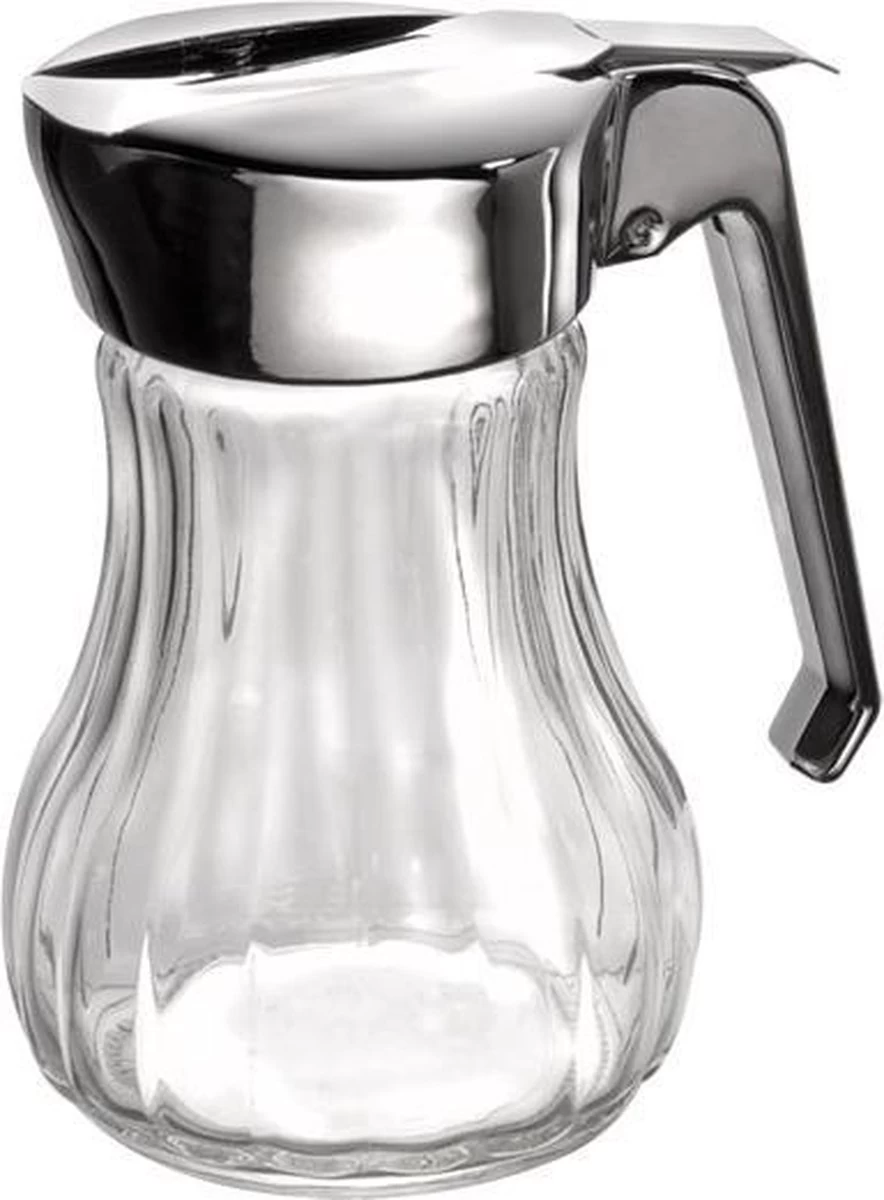 Suikerstrooier, Ø 8 cm, h: 12,5 cm, container gemaakt van glas, verchroomde plastic dop, roestvrijstalen deksel, 250 ml