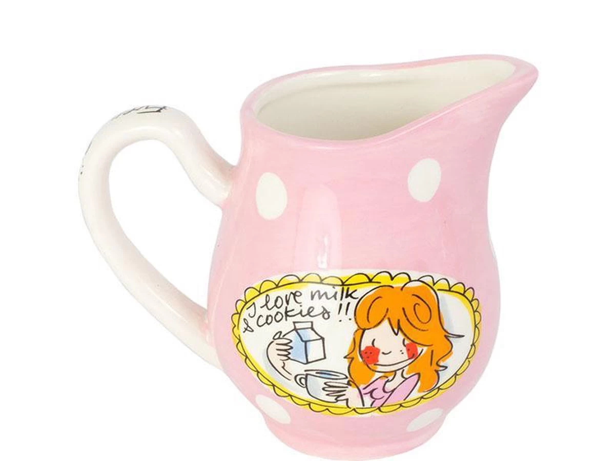 Dit vrolijke en kleurrijke melkkannetje maakt jouw tafel nog gezelliger! De opvallende en kleurrijke illustraties kenmerken de “Even bijkletsen’ lijn van de twee vriendinnen uit Amsterdam: een servieslijn met een knipoog. Het “Even bijkletsen’ servies, waar Femque en Janneke bekend mee zijn geworden, bestaat o.a. uit met o.a. kop en schotels, borden, petitfours en theepotten. Om de lijn compleet te maken is er nu ook een melkkan.