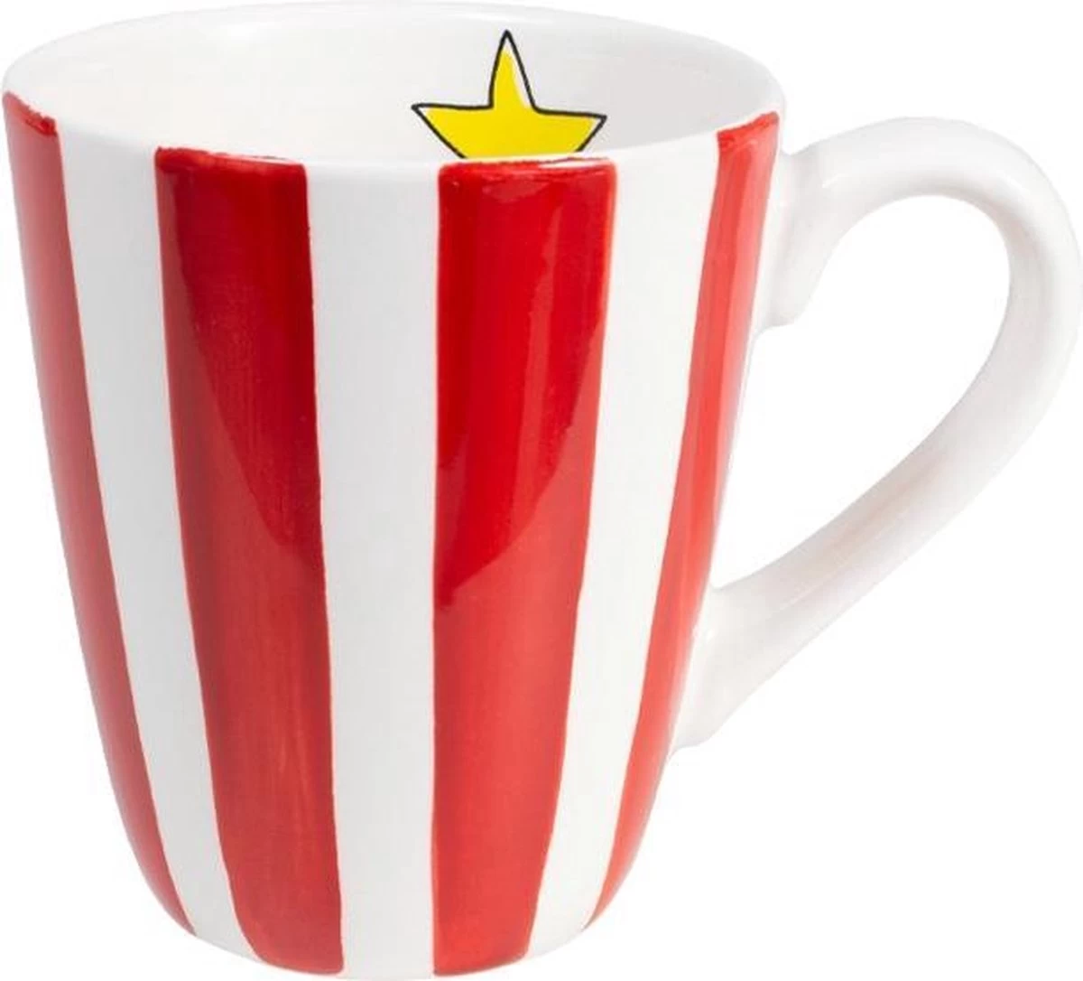 De collectie Even Bijkletsen is uitgebreid met nieuwe items. Dit keer niet met de kenmerkende illustraties, maar met kleurrijke strepen. Dit servies is leuk te combineren met het reguliere Even Bijkletsen servies of juist ook leuk om te combineren met een andere collecties. Deze beker bestaat uit een rode streep met wit. Aan de binnenkant van deze beker komt de ster weer terug. Deze beker kan je leuk combineren met de andere nieuwe producten met sterren en of strepen of je kan het leuk combineren met het reguliere servies van Blond Amsterdam.