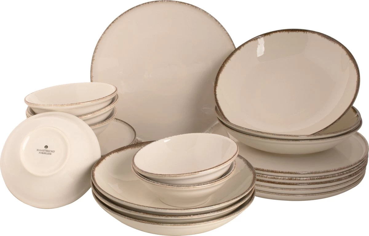 · Inhoud set: 6 dinerborden 28 cm, 6 ontbijtborden 20 cm, 6 diepe borden 25 cm, 6 schalen 16 cm
