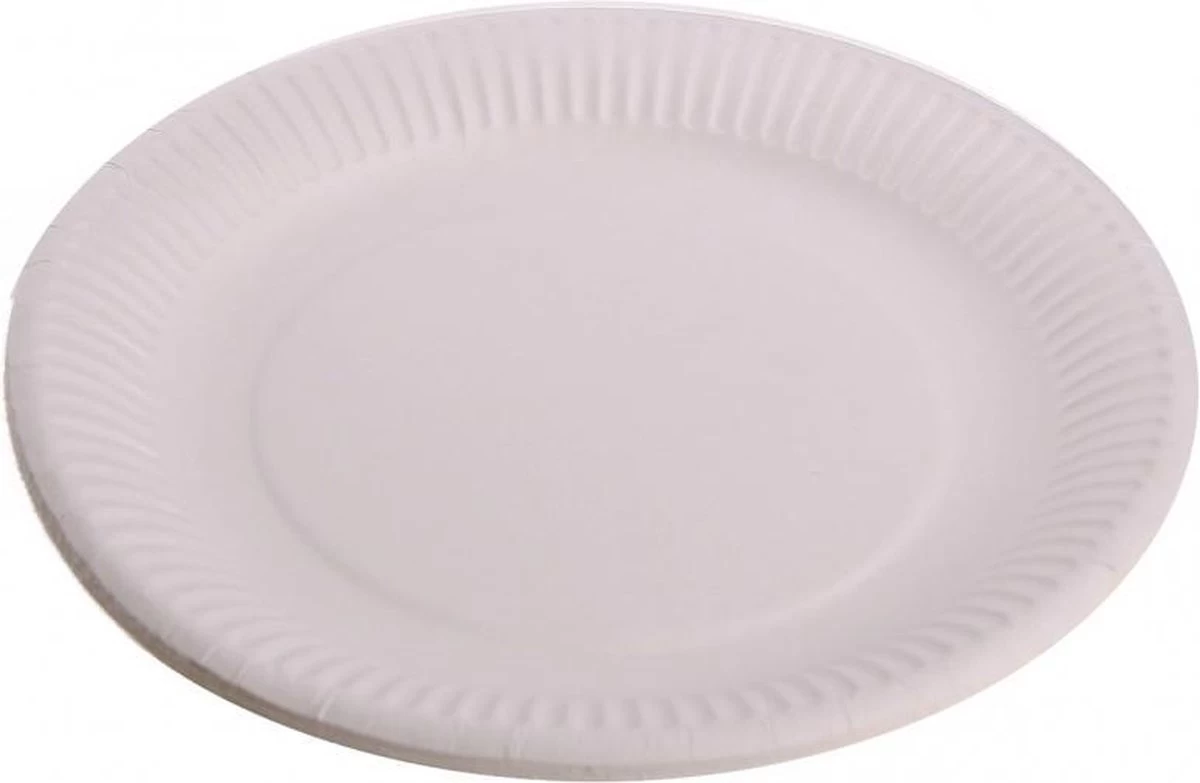 100x Kartonnen bordjes wit 23 cm. Deze witte wegwerp bordjes zijn gemaakt van karton en zitten verpakt per 100 stuks. De diameter van de bordjes is 23 cm. Kartonnen eetbordjes voor een verjaardag, feestje of BBQ.