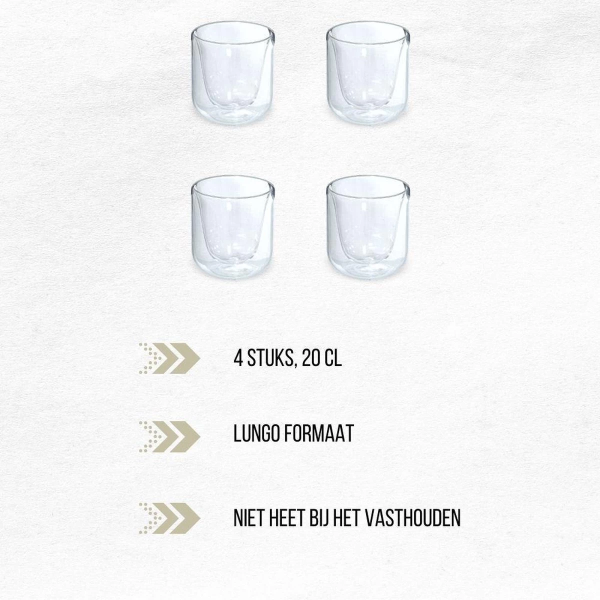 Specificaties van de dubbelwandige glazen: