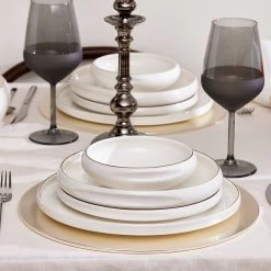 Karaca Adelia -24 Delig-voor 6 Personen -porselein -gouden Half Vierkant Serviesset-goud&wit
