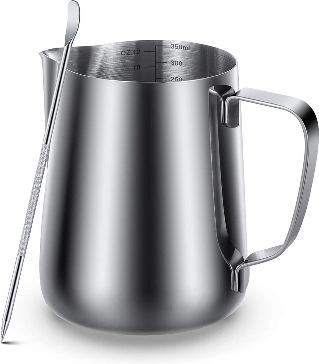 Wil je mooi melkschuim maken voor op je koffie? Dan mag Qualita melkkannetje met een inhoud van 350ML niet ontbreken. Om goed melkschuim te kunnen maken kun je het best een melkkannetje gebruiken van RVS, omdat dit de warmte goed geleid.Op deze manier voel je goed aan wat de temperatuur van je melkschuim is, en voorkomje dat het te heet wordt.
