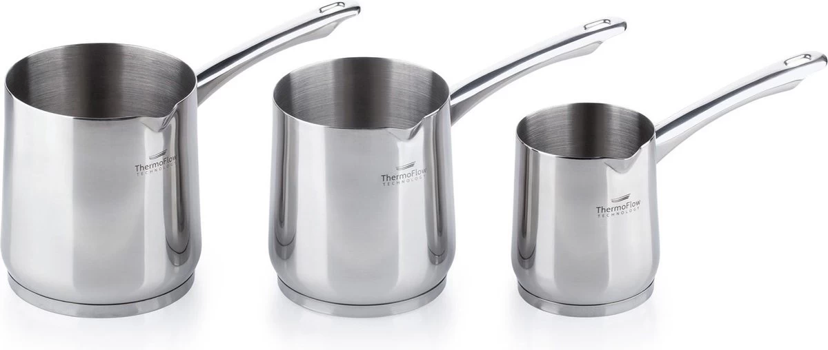 De Turkse koffiepot van roestvrij staal in een modern design geeft de authentieke en rijke smaak van Turkse koffie. Een symbool van gastvrijheid dat perfect past in zowel traditionele als moderne keukens. Het is een echte allrounder en zorgt al generaties lang voor de lekkerste koffierecepten. Dit maakt dat deze koffiepot tot een van de 100 meest populaire geschenken.