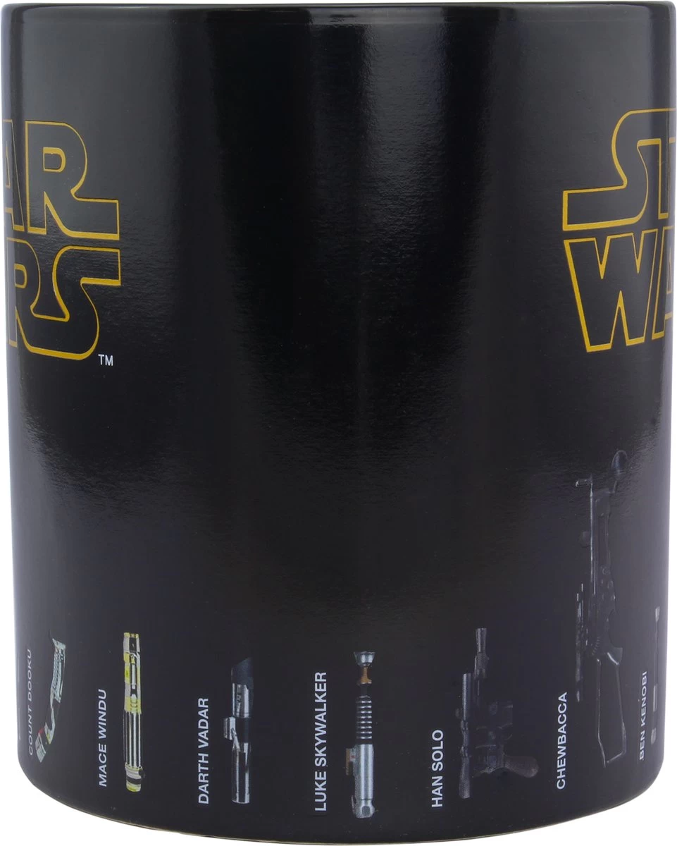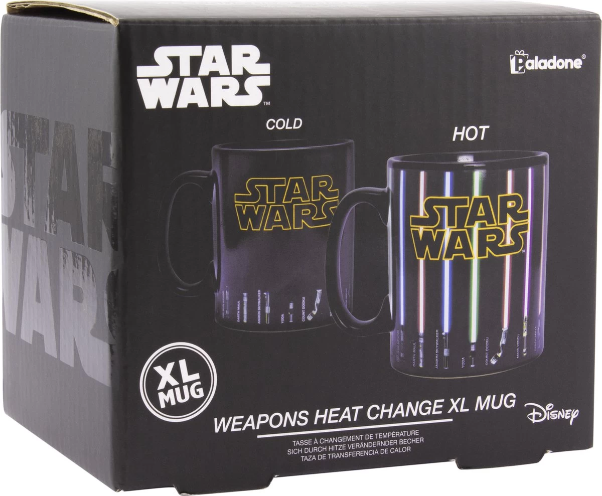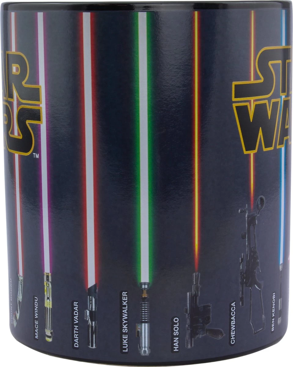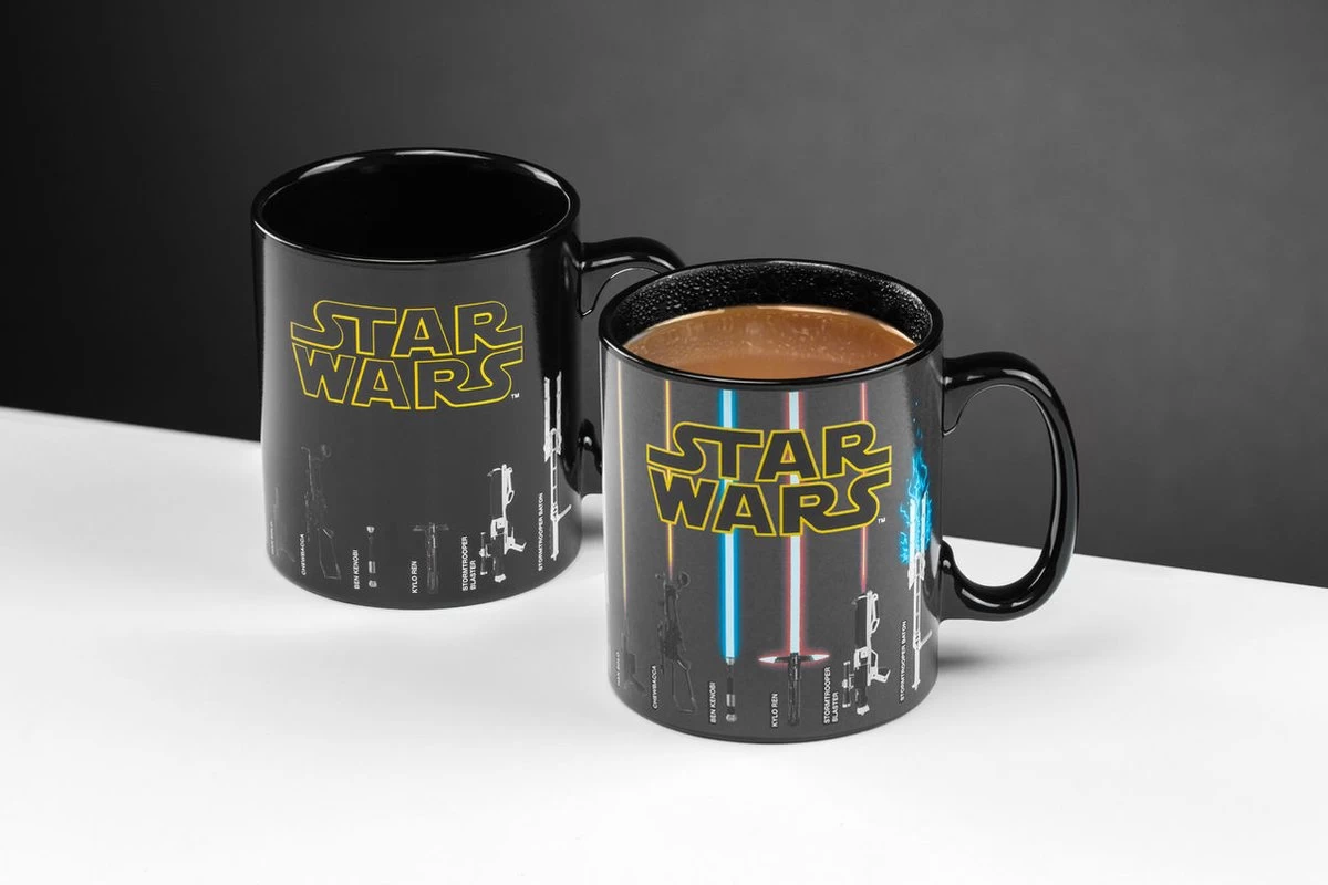Nu kun je een oversized versie van 550 ml krijgen van dit geliefde, officieel gelicentieerde mokontwerp. Wat deze mok onderscheidt van de massa is de magische manier waarop de buitenkant transformeert. Je hebt de kracht niet nodig om de afbeelding op deze schitterende mok te veranderen. Giet gewoon je favoriete warme drank in de mok en de lichtzwaarden verschijnen op magische wijze – inclusief die van Darth Vader, Luke Skywalker, Obi-Wan Kenobi, Darth Maul, Count Dooku, Yoda, Mace Windu en meer.
