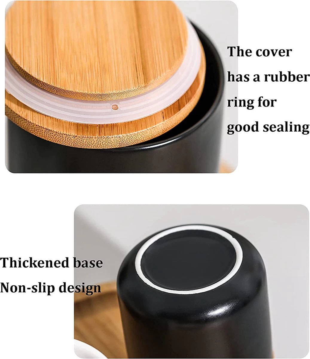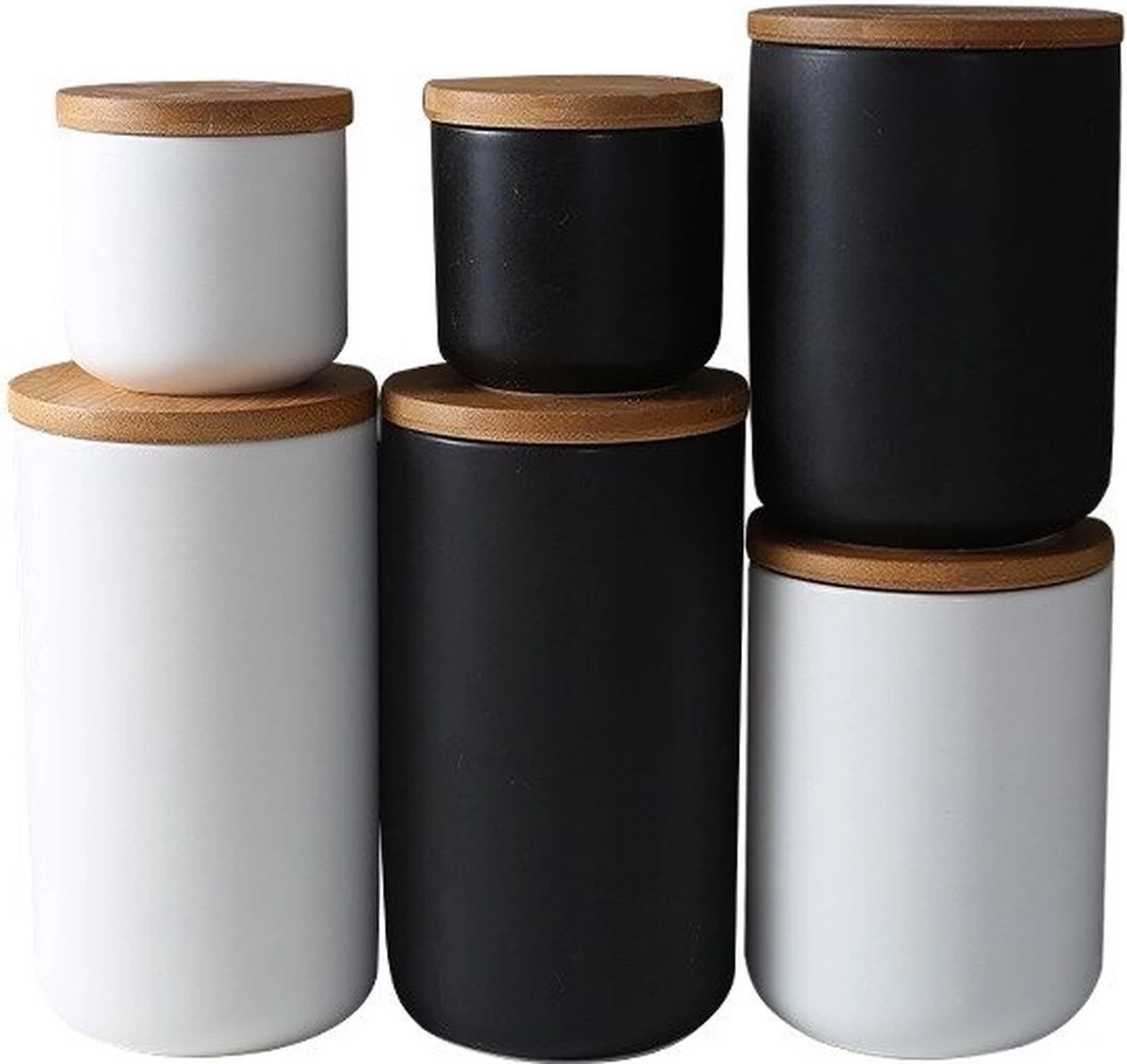 Voorraadpotten Keramiek – Suikerpot 3 stuks – Deksel Bamboe – Luchtdict Voorraadbussen Potten – Zwart