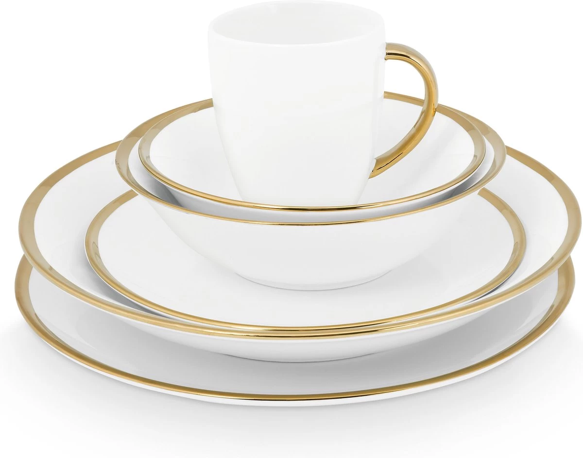 vtwonen Serviesset – Wit/Goud – Porselein – 36-Delig
